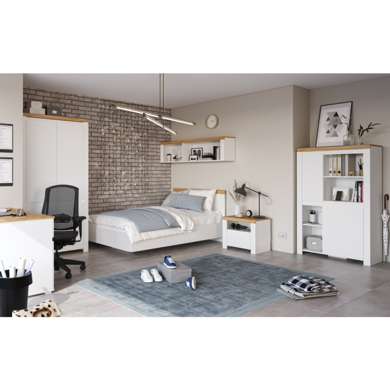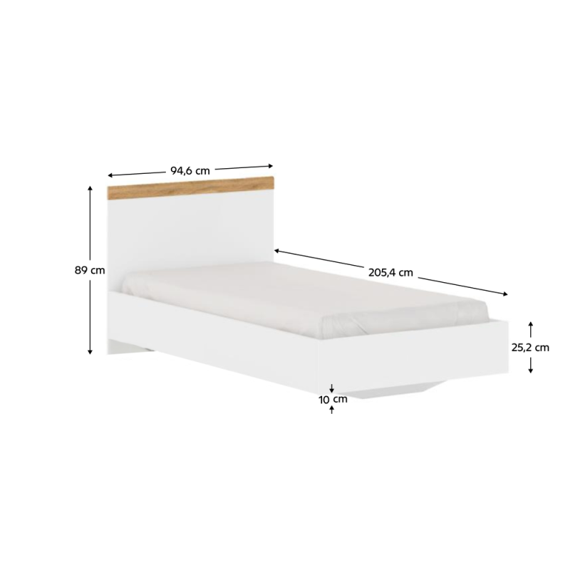 Jellemzők: Ágy, 90x200, fehér/wotan tölgy, VILGO